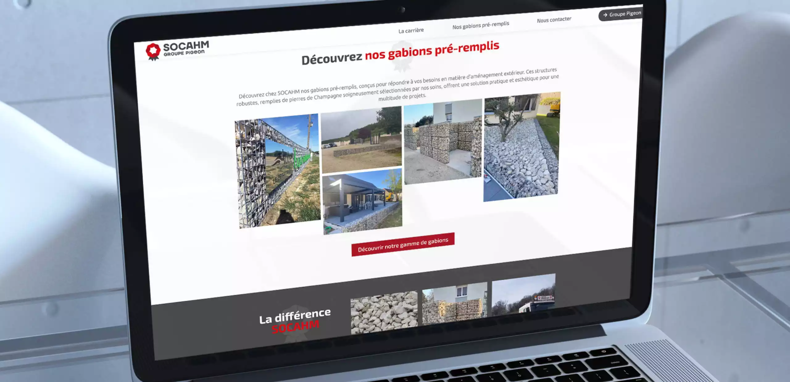 Le site de SOCAHM n’échappe pas à la règle. Bien que la charte graphique devait inéluctablement se conformer à celle du groupe Pigeon, le design du site a été pensé et construit entièrement sur mesure par la team ZOAN. Il en résulte un site épuré, intuitif et équilibré, mettant parfaitement en avant nos fameux gabions pré-remplis.